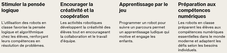 – Préparer aux métiers du numérique : Introduire les bases de la programmation pour préparer les élèves à des futures compétences technologiques.